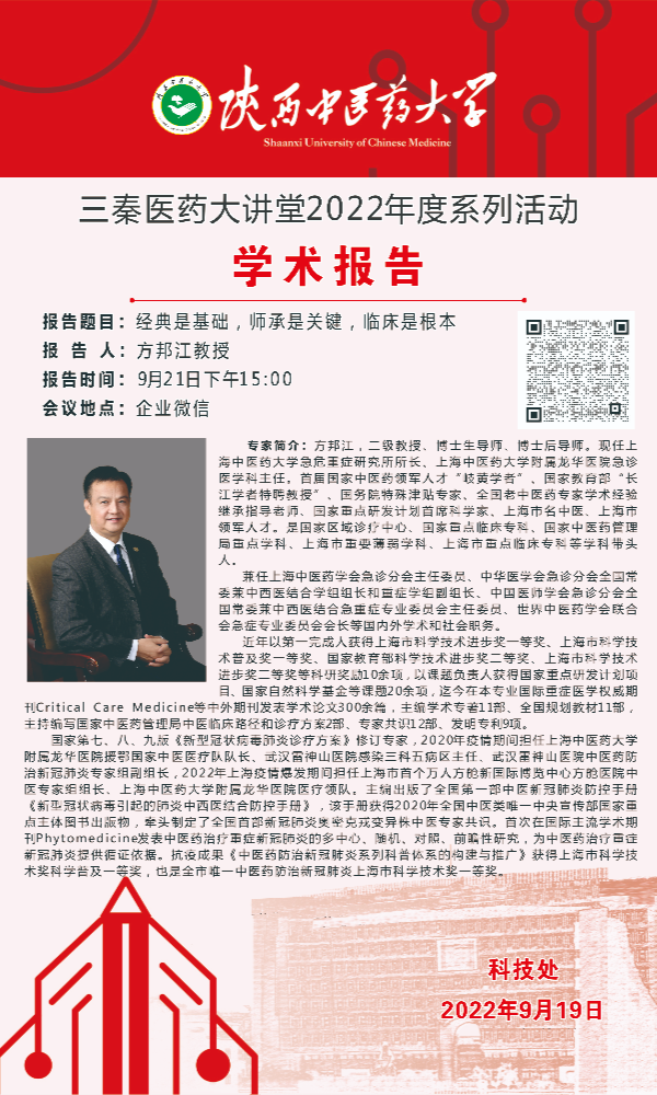 “三秦医药大讲堂”系列讲座——“经典是基础、师承是关键、临床是根本”
