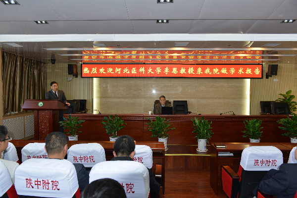 2014年10月14日,我国中西医结合学著名专家,河北医科大学中西医结合研究所原所长,中西医结合博士点和博士后科研活动站学科带头人李恩教授应邀,在我校附属医院名医馆6楼报告厅为300余名师生作了题为《中医肾本质与“肾-骨-髓-血-脑”一体论研究》的专题报告。报告会由附属医院侯俊明副院长主持。