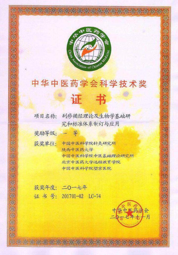 近日,2017年度中华中医药学会科学技术奖获奖项目已揭晓,由我校引进的专家杨金生研究员牵头,闫平慧教授、张豪斌老师参与的“刮痧循经理论及生物学基础研究和标准体系制订与应用”项目获得一等奖,我校为第二完成单位。