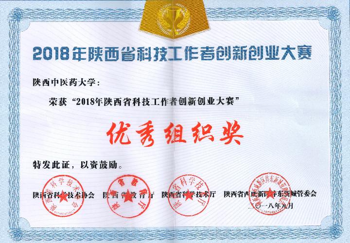 我校获批“2018年陕西省科技工作者创新创业大赛”优秀组织奖