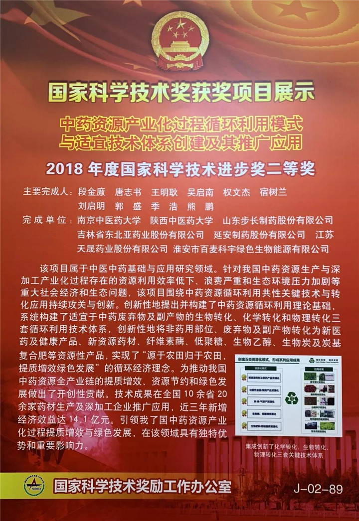 由南京中医药大学段金廒教授主持,我校唐志书教授作为第二完成人的项目“中药资源产业化过程循环利用模式与适宜技术体系创建及其推广应用”荣获国家科学技术进步奖二等奖。