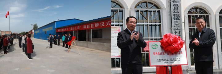 孙振霖分别与苏晓梅、王旭为“永寿县关中地区适生中药材种子种苗选育基地”和“旬邑县连翘产业扶贫示范基地”挂牌。