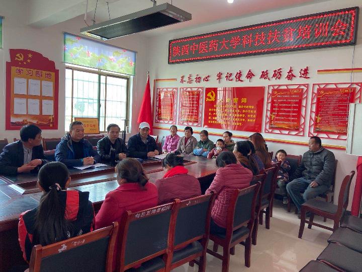 为深入贯彻落实党中央关于脱贫攻坚的决策部署,积极响应学校对做好长舌头村复工复产及扶贫工作的号召,4月3日,在做好疫情防控的同时,我校科技处、科技扶贫专家团一行4人赴长舌头村开展科技扶贫,并召开了陕西中医药大学科技扶贫中药材种植技术培训会,科技扶贫团专家程虎印、颜永刚教授就连翘等中药材的生物习性、生长特点进行讲解,就栽种株距、行距、坑深、平整、病虫害管理等种植技术进行了培训。培训结束后,一同前往连翘种植党员示范基地进行了田间管理现场指导。