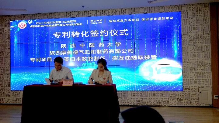 9月15日上午,由咸阳市质量监督管理局、咸阳市知识产权局联合我校共同举办的“2022年咸阳市医药产业质量提升及专利转化对接活动-陕西中医药大学专场”在陕西步长制药有限公司举办。我校科技处处长孙静带队,签约项目负责人、路演老师等共8人参会。