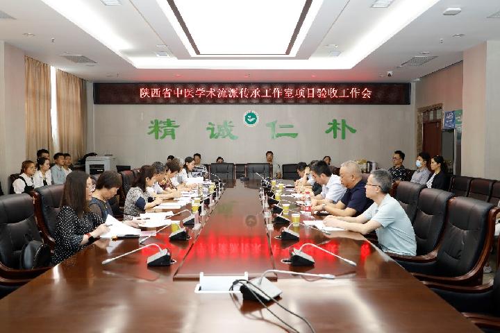 本次共有四个陕西省中医学术流派传承工作室项目进行验收汇报,分别是陕西张氏脑病学术流派传承工作室项目、陕西郭氏针灸学术流派传承工作室项目、陕西杜氏肾病学术流派传承工作室项目、关中李氏骨伤流派传承工作室项目。四位负责人依次从流派创立脉络、工作室创立情况等方面进行汇报。汇报结束后,专家组对各工作室的资料进行查阅并去流派工作室现场进行实地查看。
