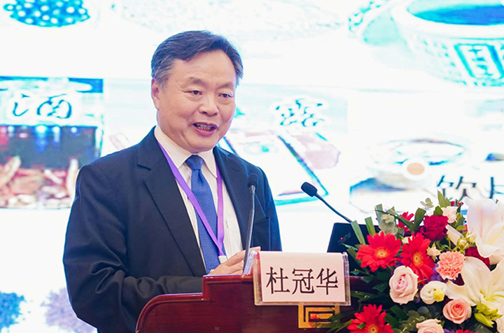中国药理学会党委书记兼副理事长杜冠华作报告