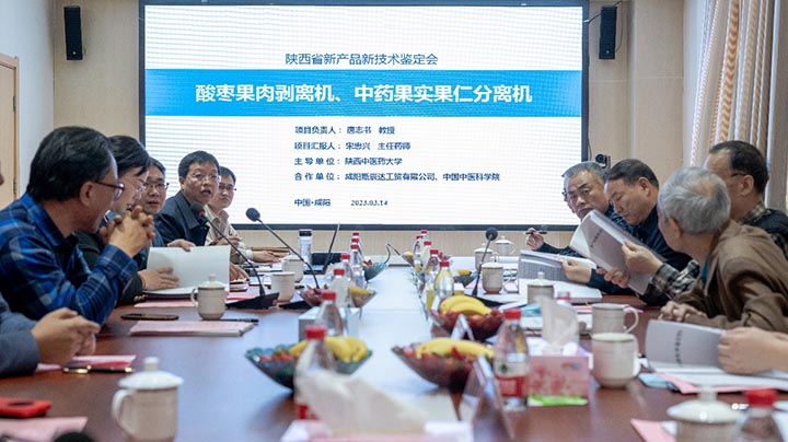 3月14日下午,我校主导研发的“酸枣果肉剥离机”“中药果实果仁分离机(酸枣、山桃、杏)”两台中药农业机械新产品鉴定会在陕西中药资源产业化省部共建协同创新中心(中药创新中心)二楼会议室线上线下结合方式召开。