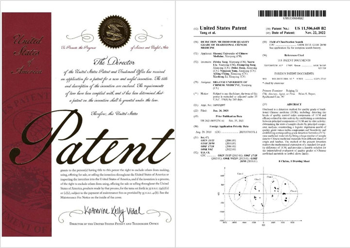 近日,我校陕西中药资源产业化省部共建协同创新中心唐志书教授团队研发的 “中药质量等级检测方法”,获得美国发明专利授权,在美国全境获准此项专有技术20年保护期。该专利为我校获批的首个国际发明专利。