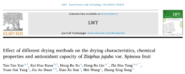 2024年3月,我校陕西中药资源产业化省部共建协同创新中心科研团队在农林科学领域TOP期刊《LWT-Food Science and Technology》发表了题为“Effect of different drying methods on the drying characteristics, chemical properties and antioxidant capacity ofZiziphus jujubavar. Spinosa fruit”的研究论文,硕士研究生薛涛涛、阮凯华为文章共同第一作者,刘红波副教授、唐志书教授为共同通讯作者。