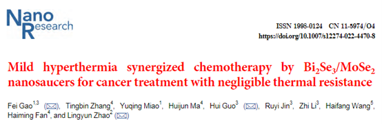 我校科研团队在纳米材料科学领域期刊《Nano Research》发表了题为“Mild hyperthermia
