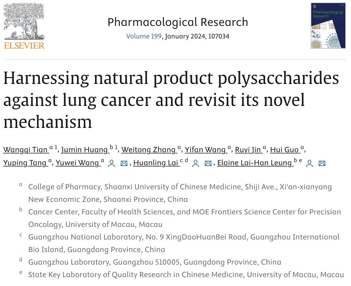 近日,我校药学专业研究生田王琪在Pharmacological Research(IF:9.30;Q1)发表题为Harnessing natural product polysaccharides against lung cancer and revisit its novel mechanism的论文,该论文由导师王育伟副教授指导完成。