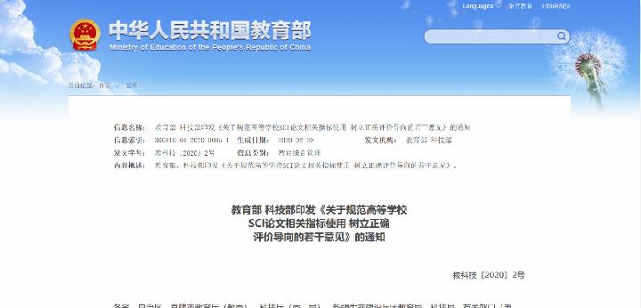 教育部、科技部《关于规范高等学校SCI论文相关指标使用 树立正确评价导向的若干意见》
