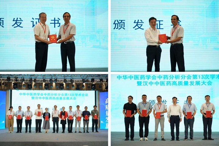 曹正逵为选举产生的中华中医药学会中药分析分会第五届委员会顾问、主任委员、副主任委员颁发证书。我校特聘教授唐志书当选为新一届主任委员。