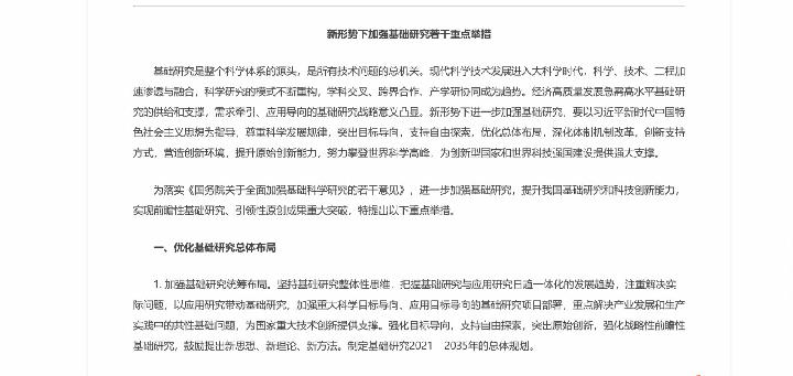 科技部办公厅、财政部办公厅、教育部办公厅、中科院办公厅、工程院办公厅、自然科学基金委办公室《新形势下加强基础研究若干重点举措》