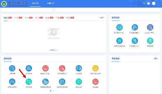 3.在“我的主页”下方“推荐应用”中找到“科研系统”,点击进入科研管理系统。